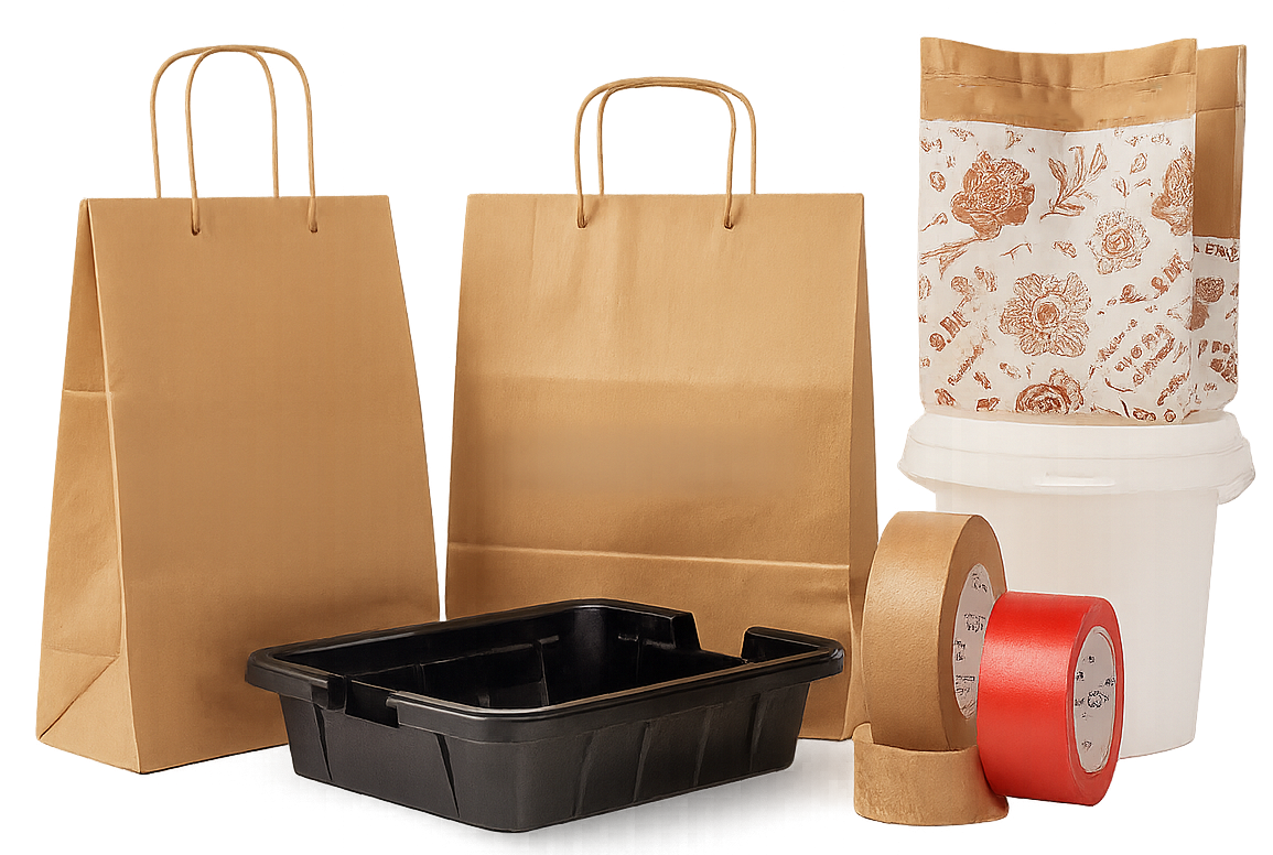 Ob Papier- oder Kunststofftragetaschen, Klebebänder, Etiketten, Schalen, Eimer oder Spezialverpackungen – dank unseres starken Netzwerks erhalten Sie schnell und zuverlässig genau die Produkte, die Sie benötigen.